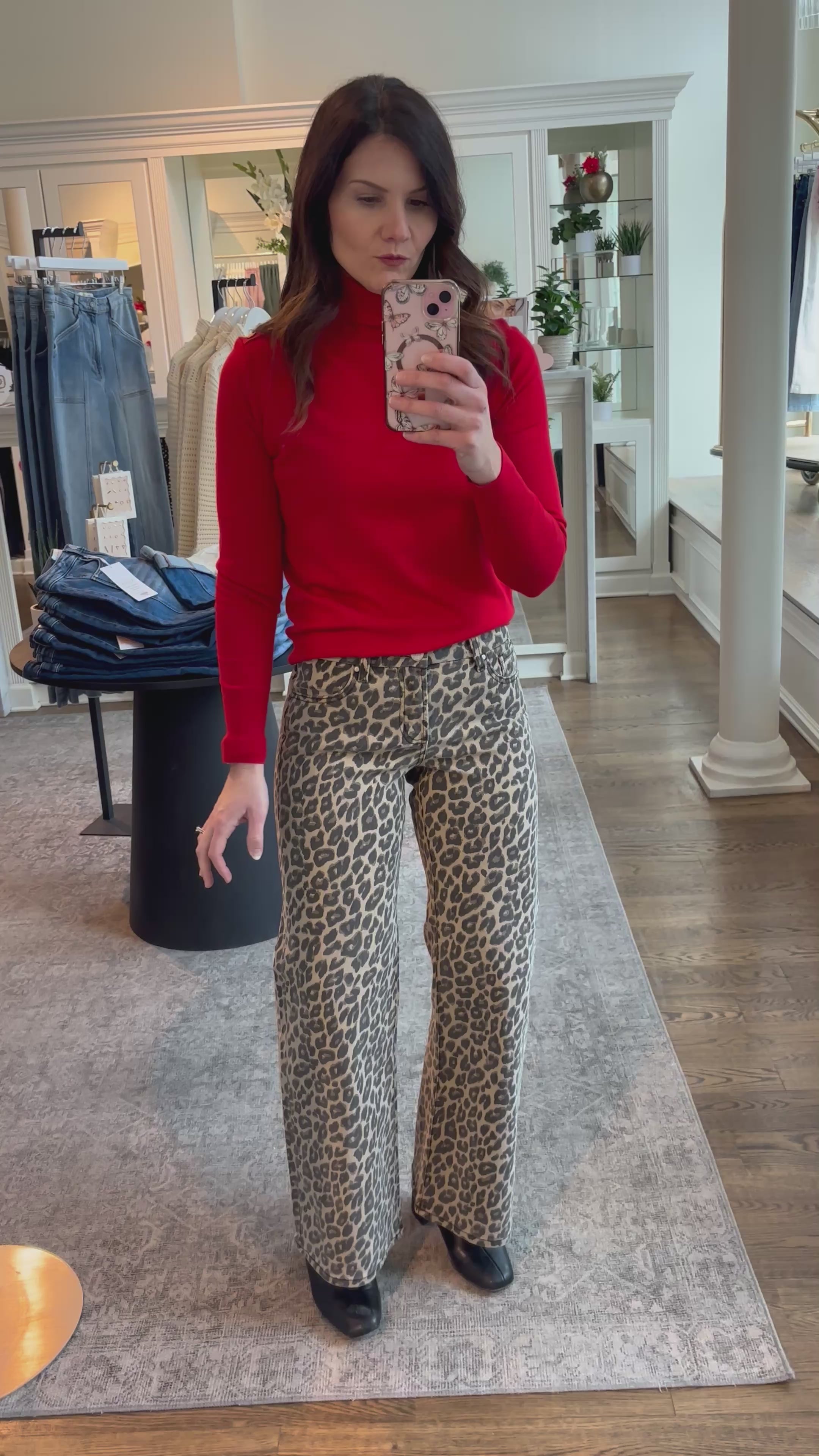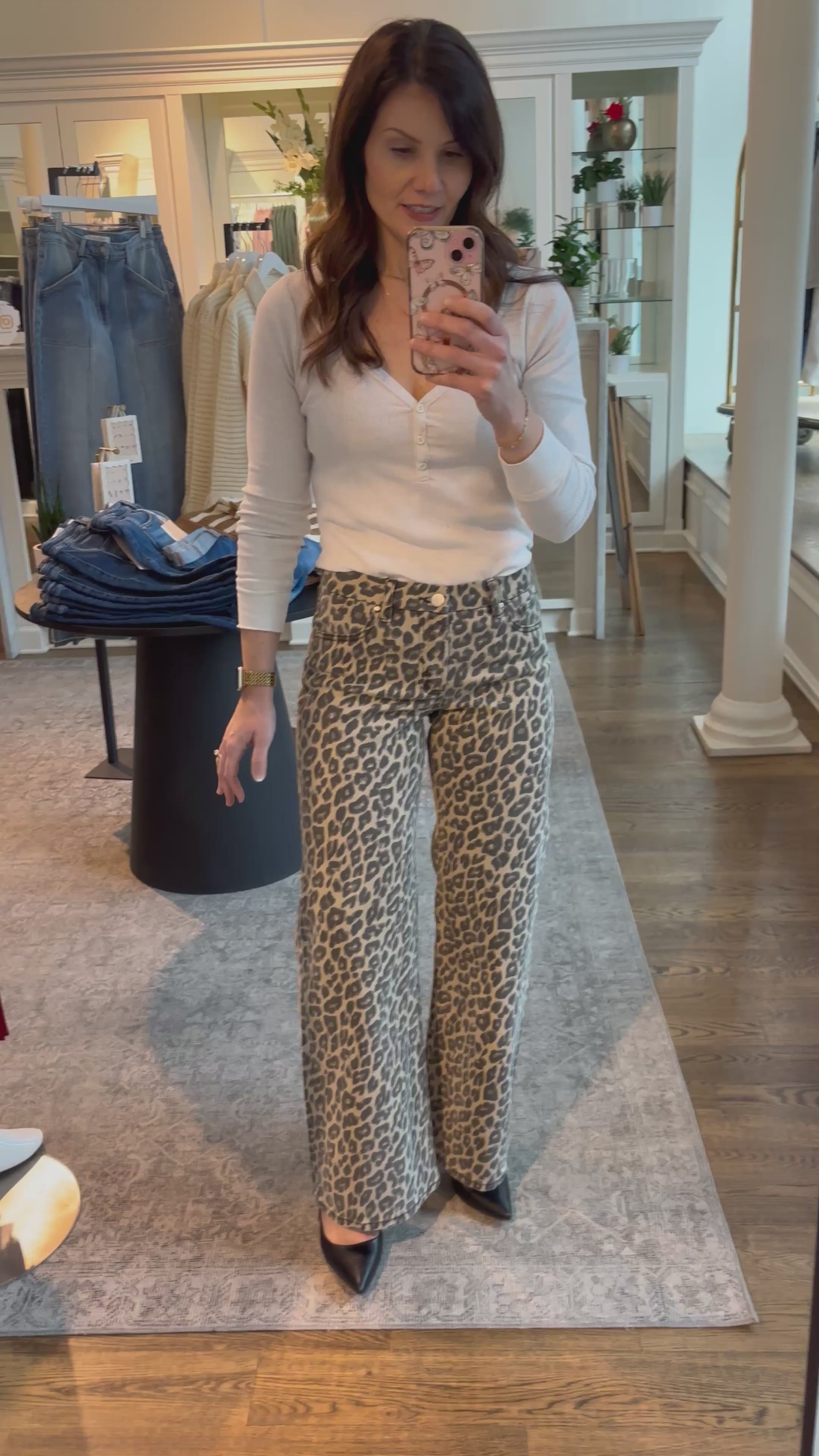 RISEN Mid Rise Leopard Wide Leg Jeans