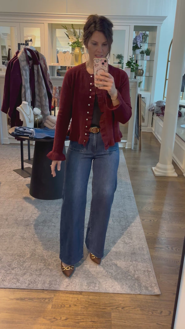RISEN Tummy Control Wine Mid Rise Wide Leg Jeans