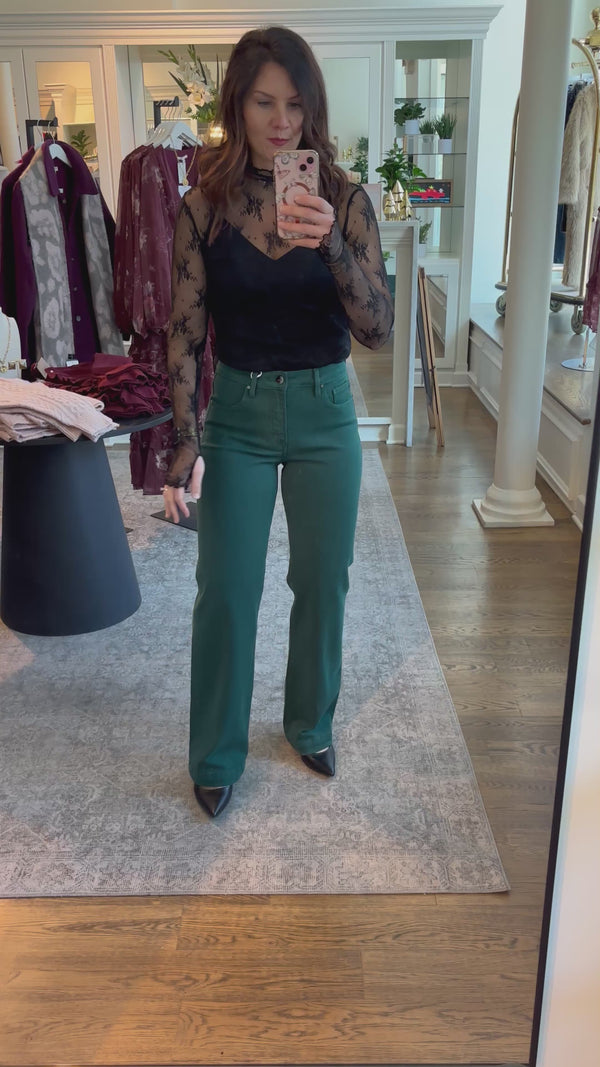 RISEN Tummy Control Hunter Green High Rise Straight Leg Jeans