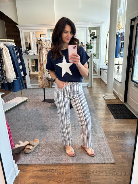 JBD High Rise Blue Stripe Vintage Straight Leg Jeans