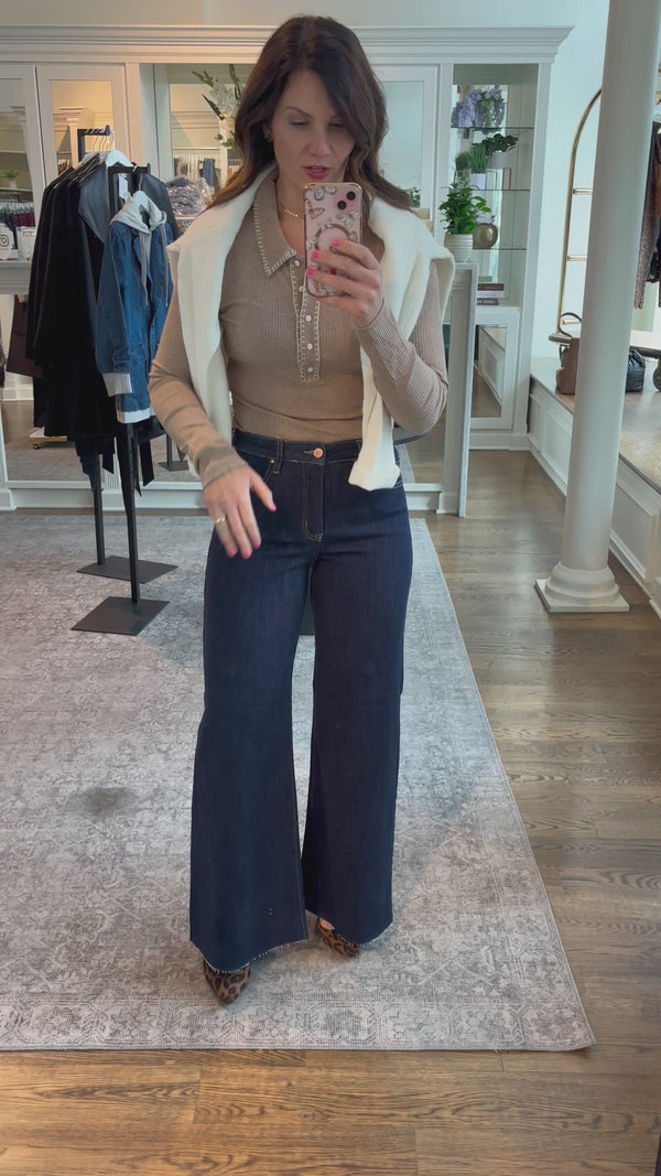 RISEN Tummy Control Dark Wash High Rise Palazzo Jeans