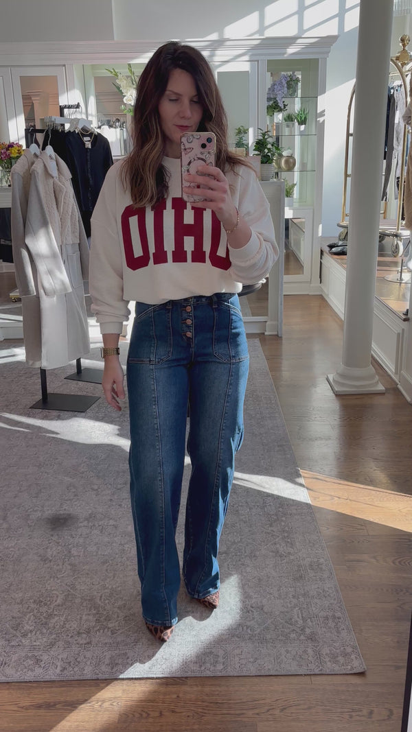 Ecru Print Wide Leg Cuffed Ankle Jeans