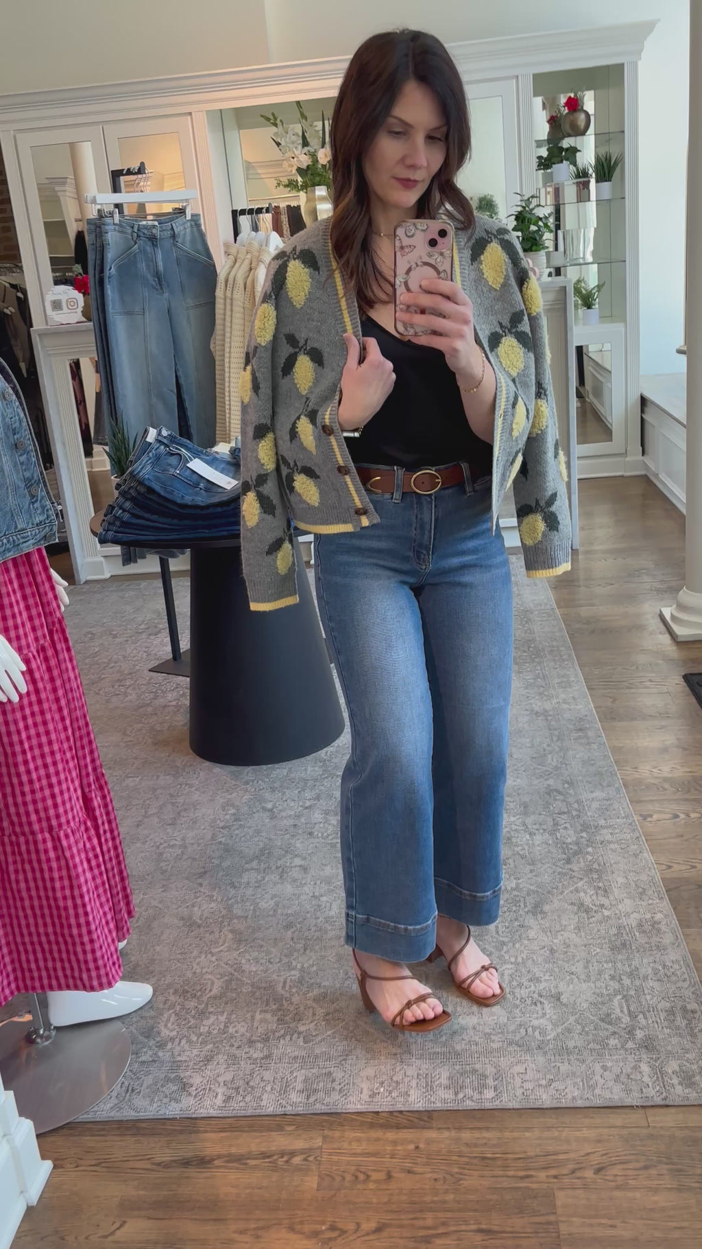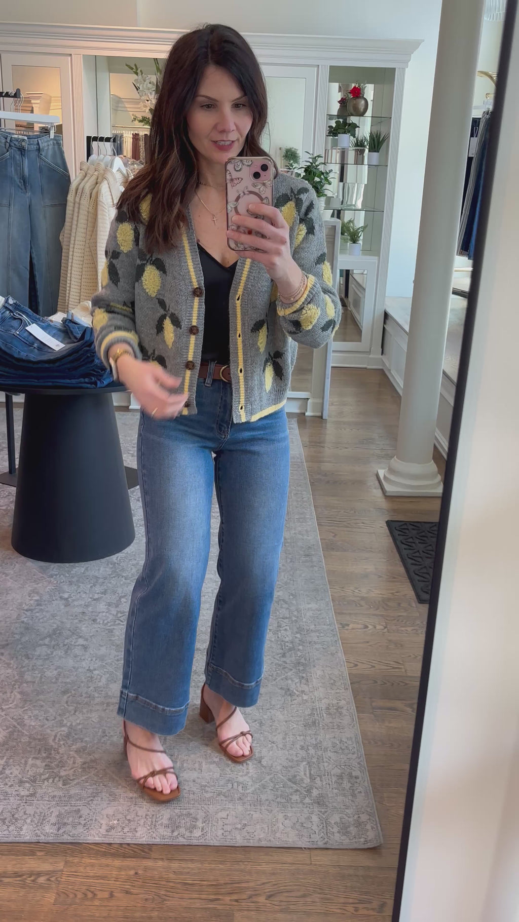 Meet the cardigan that refuses to be boring. This grey knit combines soft sophistication with a cheerful yellow lemon detail that brings instant personality to your look. Whether you're layering over basics or wearing solo, it's the perfect piece for adding a touch of whimsy without sacrificing style.