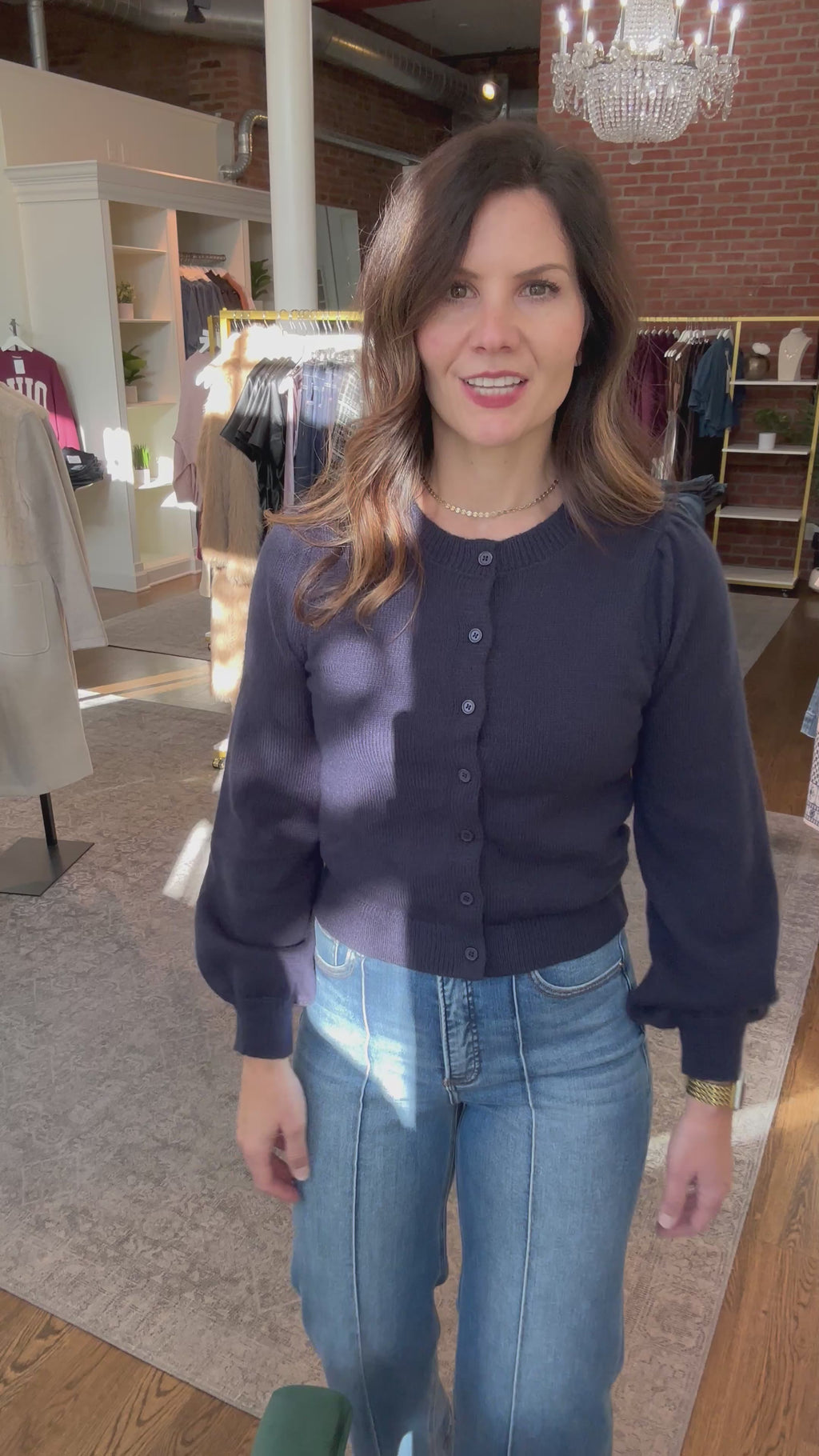 Navy Gathered Shoulder Cardigan