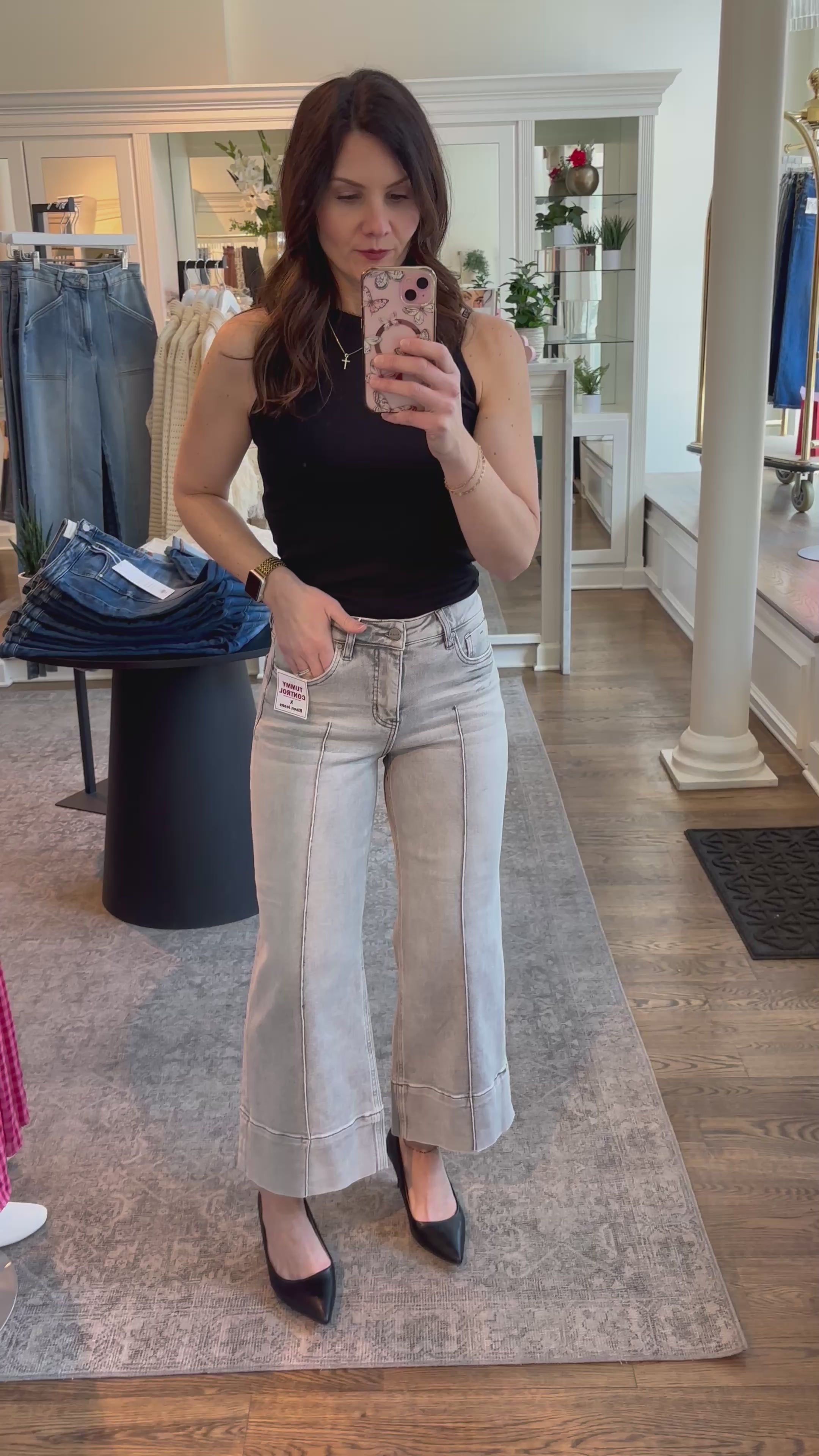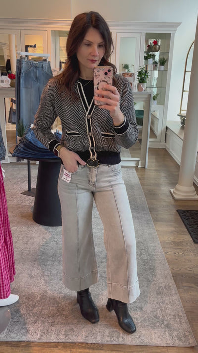 RISEN Tummy Control Gray Mid Rise Crop Wide Pintuck Front